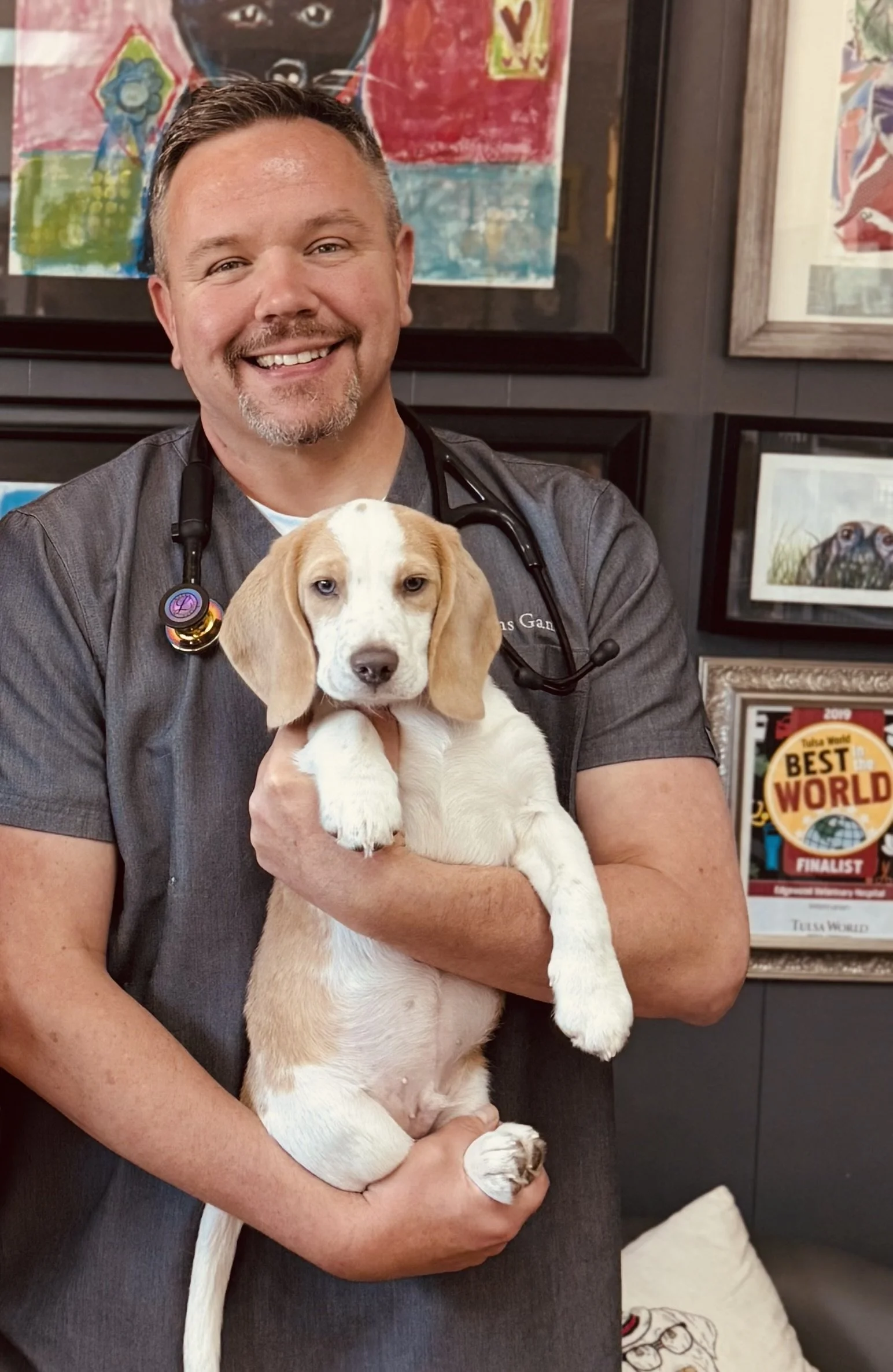 Dr. Hans Gann grew up in rural Osage County where he graduated from Barnsdall High School in 2001. Growing up on a farm with a menagerie of pets and being actively involved with the local 4-H chapter caused Dr. Gann to develop a love for animals at a very early age. He attended Oklahoma State University (Go Pokes!) where he received a Bachelor’s Degree in Animal Science in 2005 and his Doctorate of Veterinary Medicine in 2009. Dr. Gann moved to Tulsa following graduation, where he lives with a small herd of dogs, a bird, pig, and about half a dozen fish. In his spare time, he enjoys traveling, spending time with family and friends, going to the lake, and working on his house. Dr. Gann joined the Edgewood team in September of 2018.
